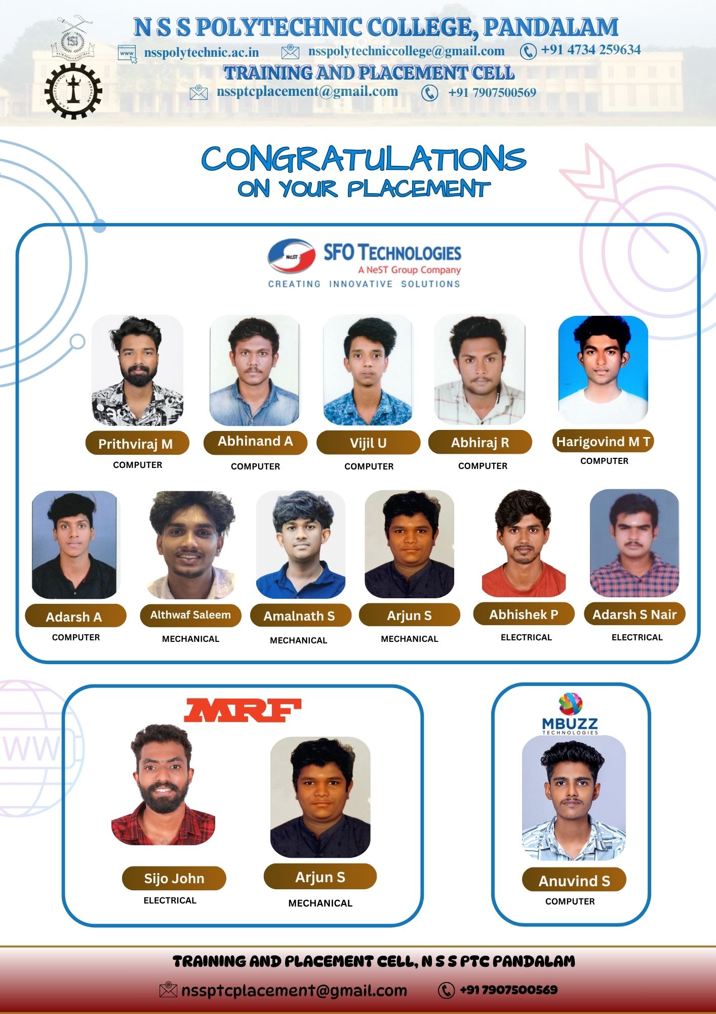 The Career Guidance & Placement Cell of N. S. S. Polytechnic functions very effectively for helping students in getting proper job opportunities. The cell conducts seminars, debates, mock interviews etc. for preparing students to face interviews. Conducting various drives and programs to inform students about higher studies and career opportunities.